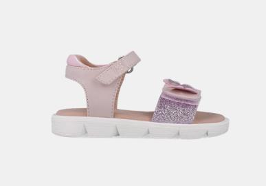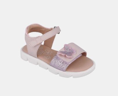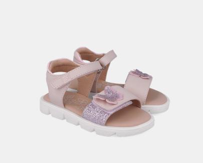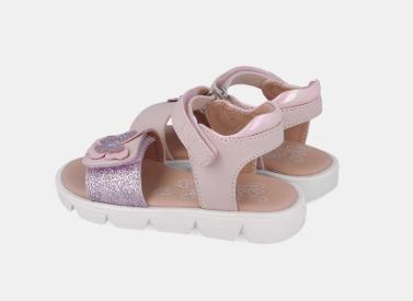 Sandalias de piel para niña en color rosa. Su doble tira ajustable sobre el empeine y tobillo permite un ajuste total brindando un extra de comodidad a nuestras peques.