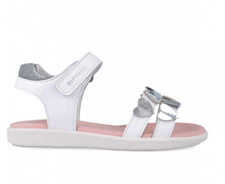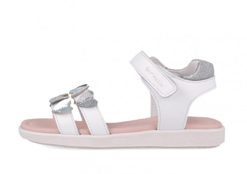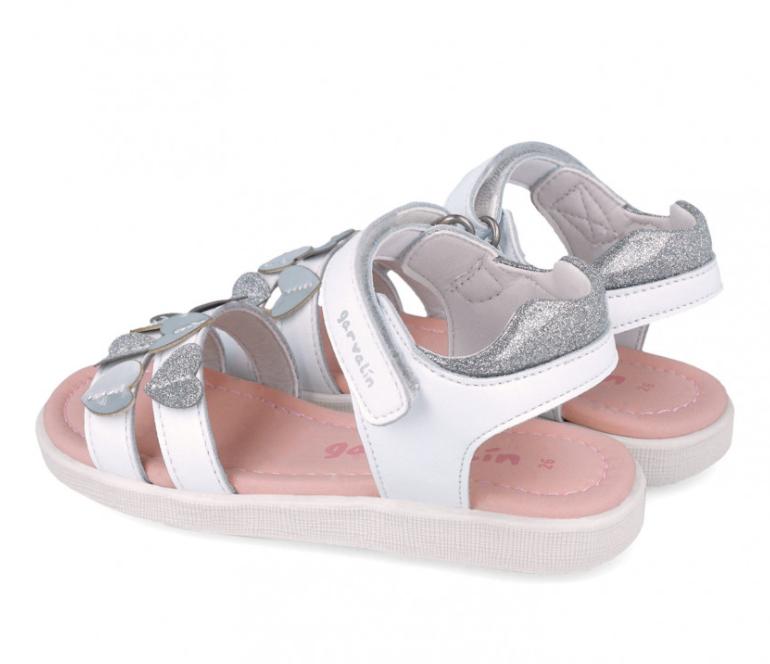 Sandalias blancas de piel con toques metalizados para niña. Un diseño elegante que nuestras peques podrán combinar en momentos más especiales pero también en su día a día. ¡Quedarán perfectas con cualquier estilo! Su tira ajustable sobre el empeine permitirá un ajuste total.