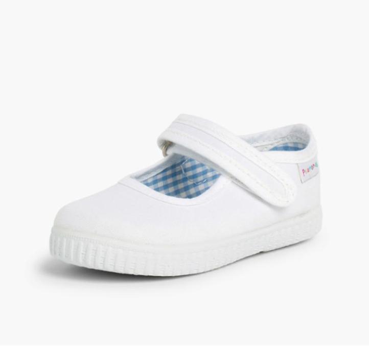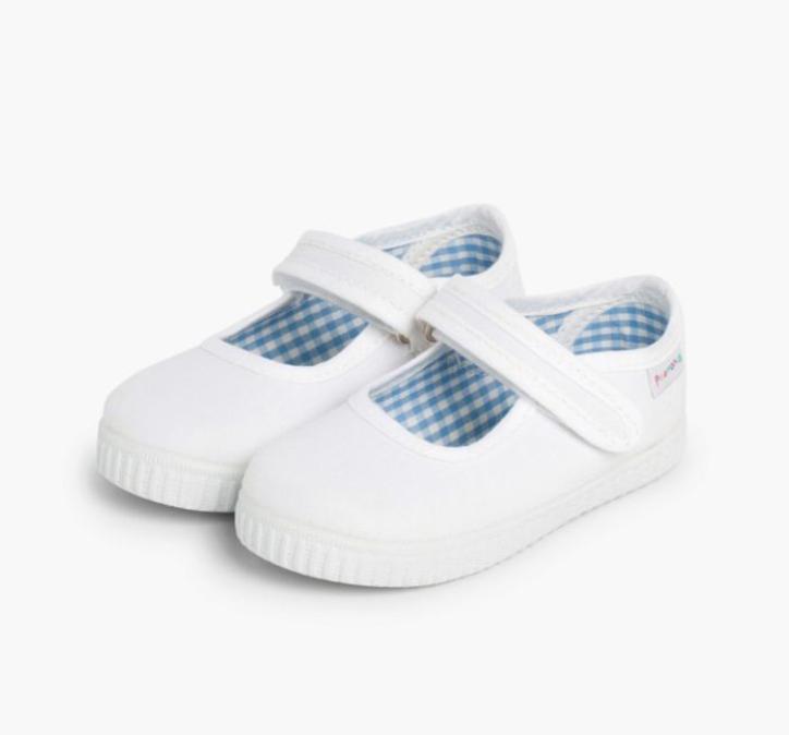 Prácticas y preciosas merceditas de lona forradas en el interior y con suela blanca tipo zapatilla para ir a la última. Un zapato infantil perfecto para los primeros años e ideales para primavera y verano. Con cierre de tira adherente para un rápido y perfecto ajuste. En colores muy combinables y lavables, de fabricación nacional y aquí más baratos. A la hora de elegir la talla para este modelo, recomendamos pedir un número menos ya que tiende a tallar grande.