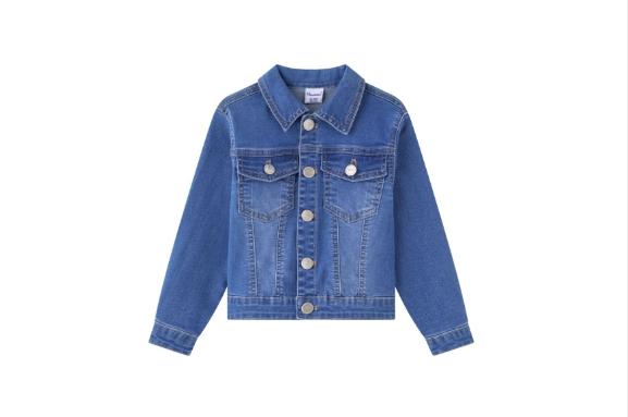 Chaqueta vaquera bebé niño manga larga, con bolsillo de tapeta en delantero y bolsillos con vivo en costados, color medio