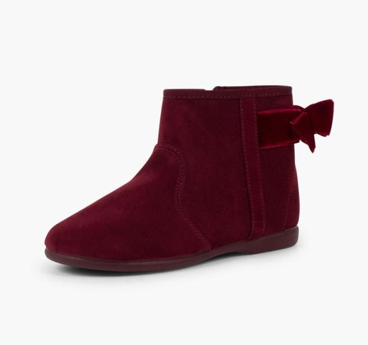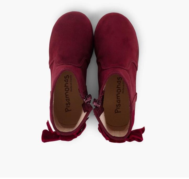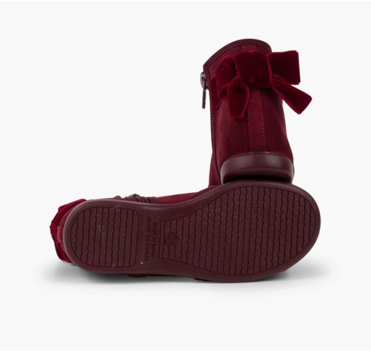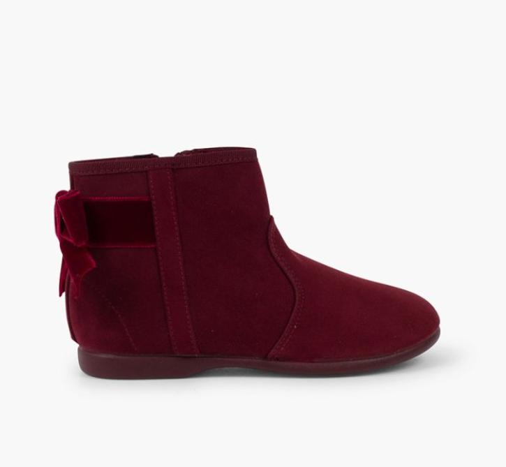 Botines con lazo terciopelo y cremallera BURDEOS