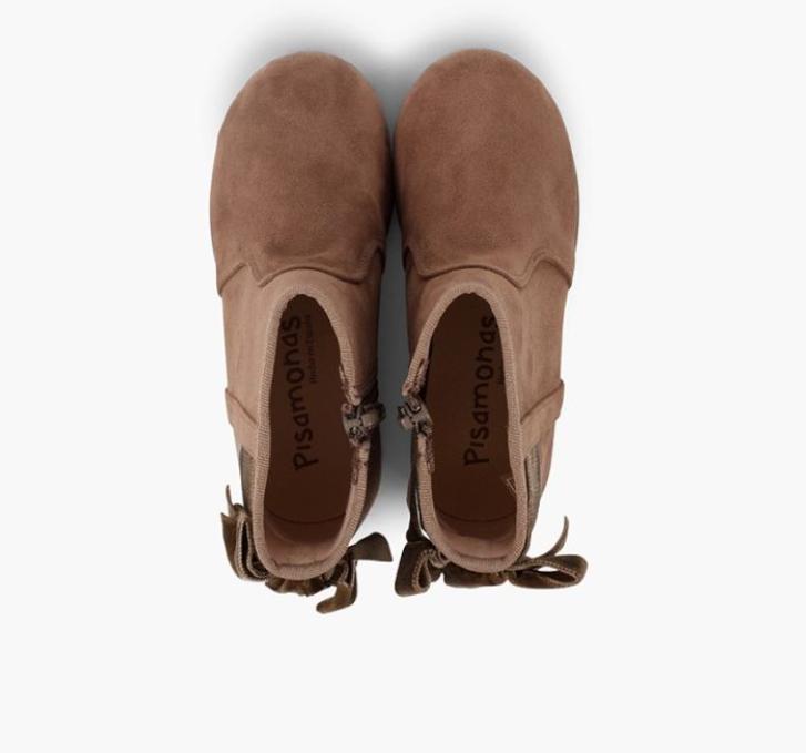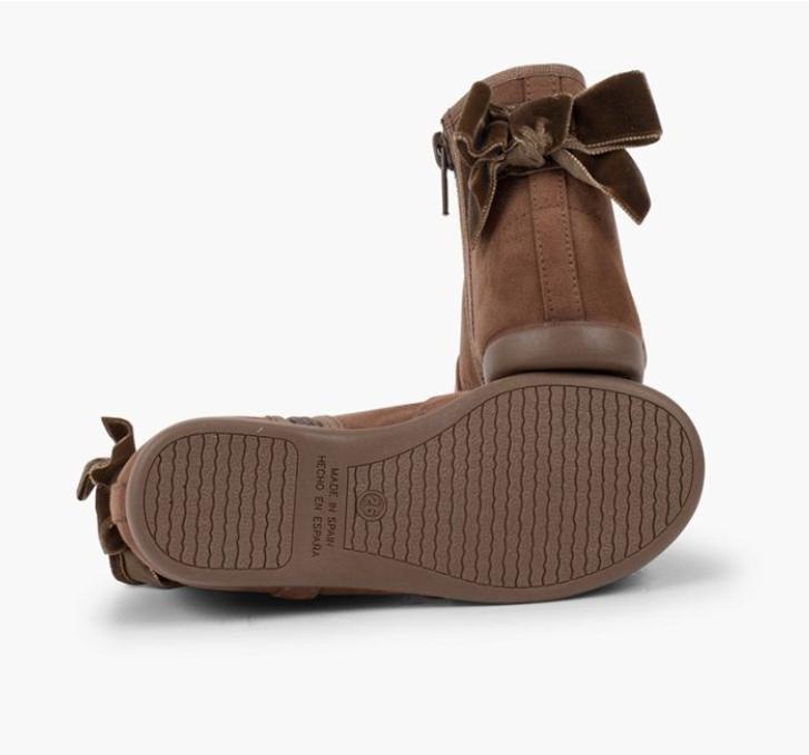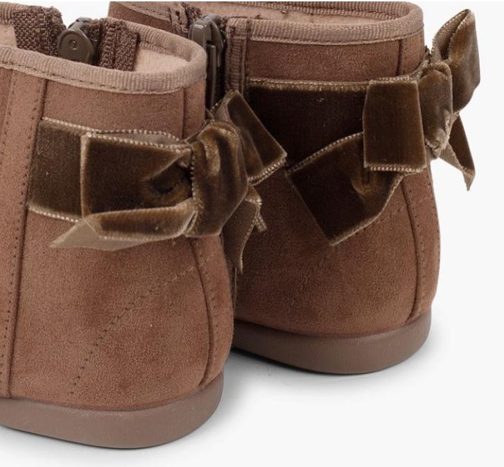 Botines con lazo terciopelo y cremallera TOPO