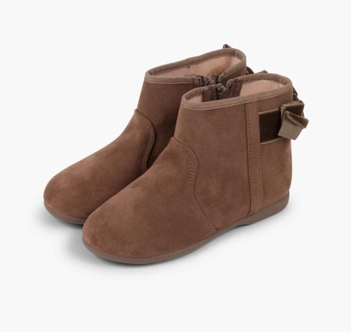 Los botines de moda para las niñas más estilosas. Y este modelo con detalle de lazo trasero en la parte trasera ¡está causando sensación! Y es que, en apariencia, es un modelo sencillo de botín con caña por encima del tobillo, cierre de cremallera lateral y fabricado en serratex pero con el lacito de terciopelo detrás para darle un toque más coqueto y de absoluta tendencia.