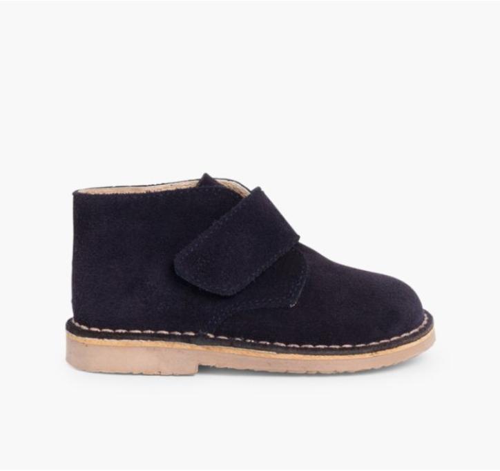 Muy resistentes y con cómodo cierre de tira adherente . Fabricadas en España, exterior de serraje en una gran variedad de colores y forrada de piel en el interior.