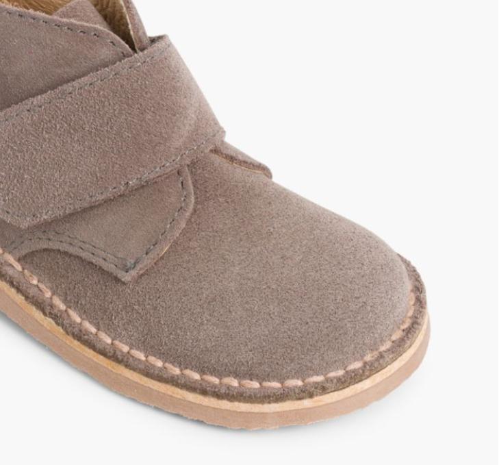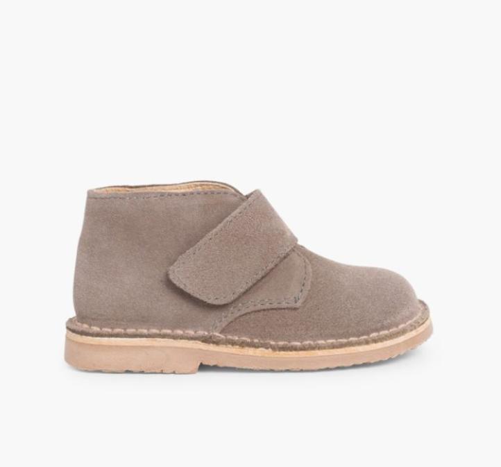Muy resistentes y con cómodo cierre de tira adherente . Fabricadas en España, exterior de serraje en una gran variedad de colores y forrada de piel en el interior.