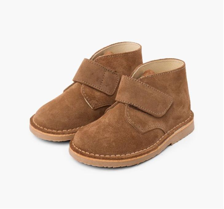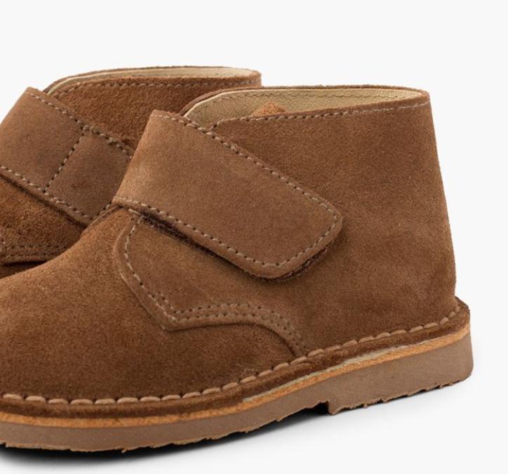 Muy resistentes y con cómodo cierre de tira adherente . Fabricadas en España, exterior de serraje en una gran variedad de colores y forrada de piel en el interior.