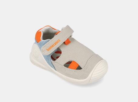 Sandalias infantiles Biomecanics gris con detalles en naranja